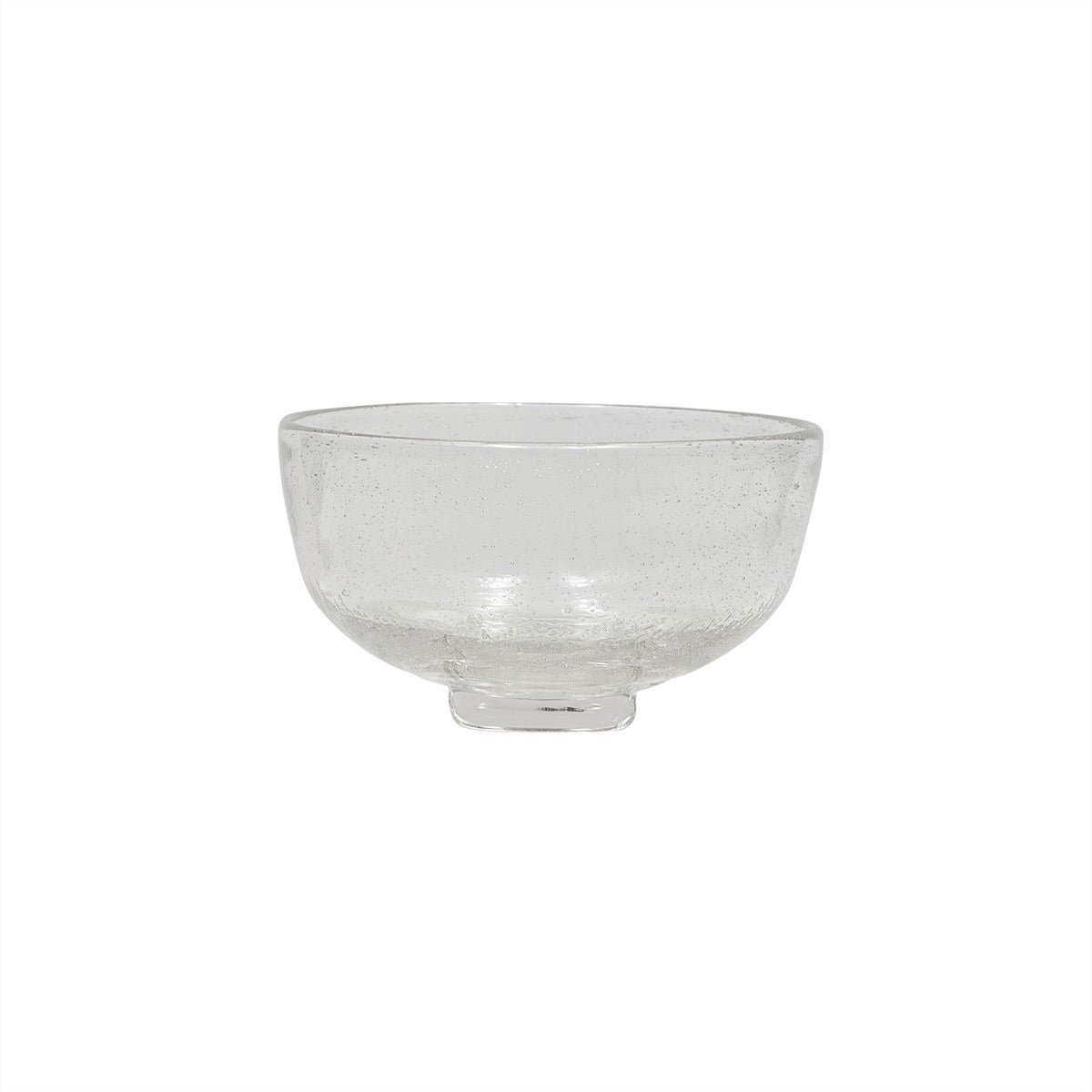 Le bol Kuki en verre présente des éclaboussures à bulles qui ajoutent une touche de fantaisie à son design minimaliste. Le pied carré ajoute un élément ludique à son esthétique intemporelle, mélangeant la fonctionnalité avec l’élégance. Utilisez-le pour votre table de table ou simplement comme pièce décorative. Étant un coup bouché, chaque bol varie en taille, ajoutant à son charme unique.