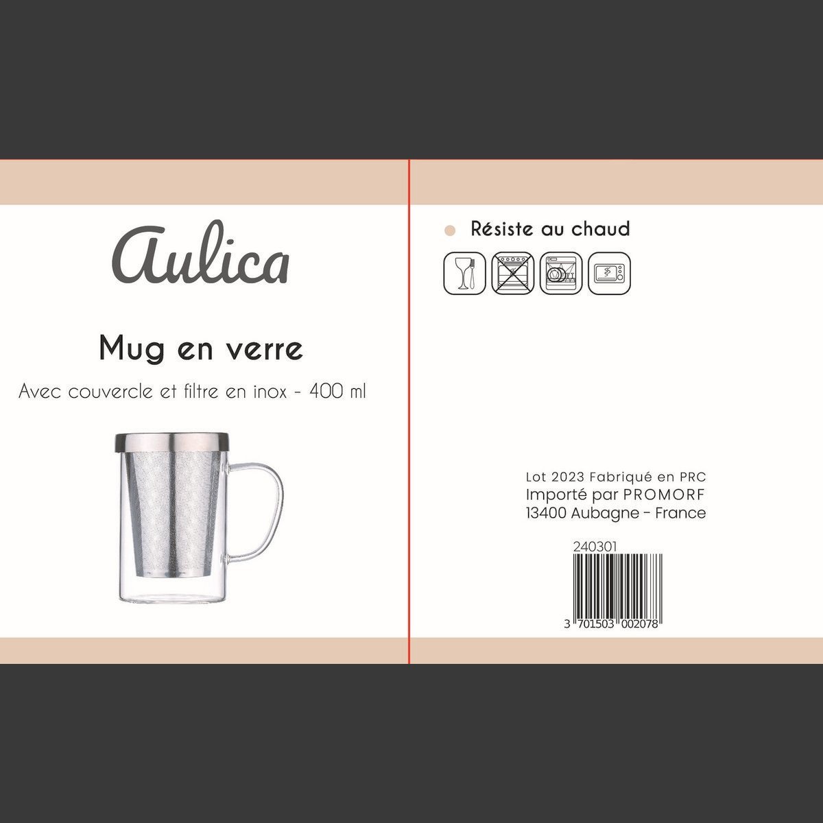 240301 – Mug 400ml avec couvercle et filtre inox – AULICA