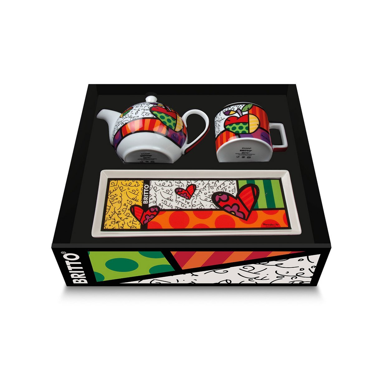 Service à thé : plateau, tasse, mug et théière « Coeur »
