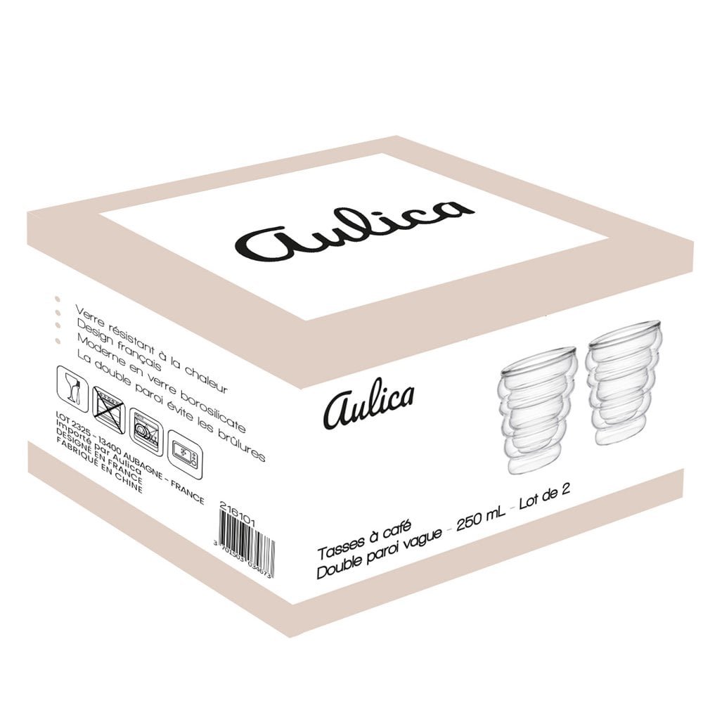 216101 – Lot de 2 tasses à café en verre double paroi vague 250ml – AULICA