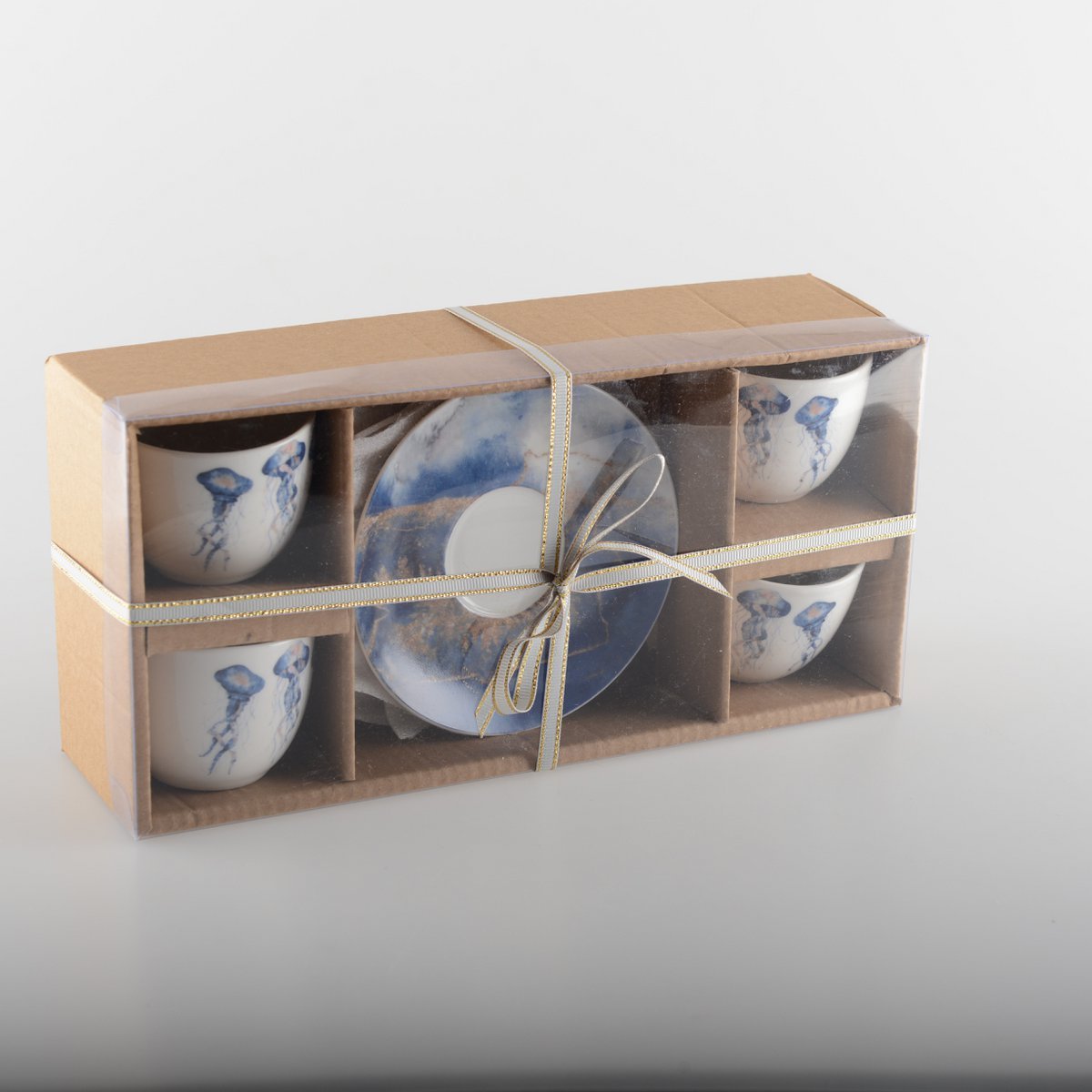 Lot de 4 tasses à café avec sous-tasses – Design Méduse Bleu – AULICA